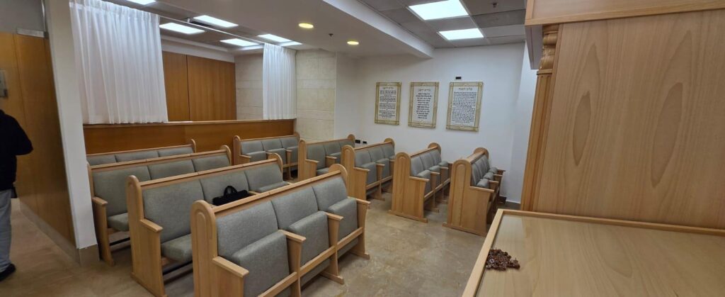 במקרה הזה, התפיסה הזו תורגמה למהלך מעשי שהשאיר במתחם מרחב קבוע ומכבד, עבור ספרי תורה שהגיעו ממקומות שונים בעולם. בית הכנסת צפוי לשמש את עובדי המשרד והמבקרים בו לתפילות, לטקסים ולאירועים, ולהוות מרחב המחבר בין שגרת העבודה לבין מסורת וזהות.